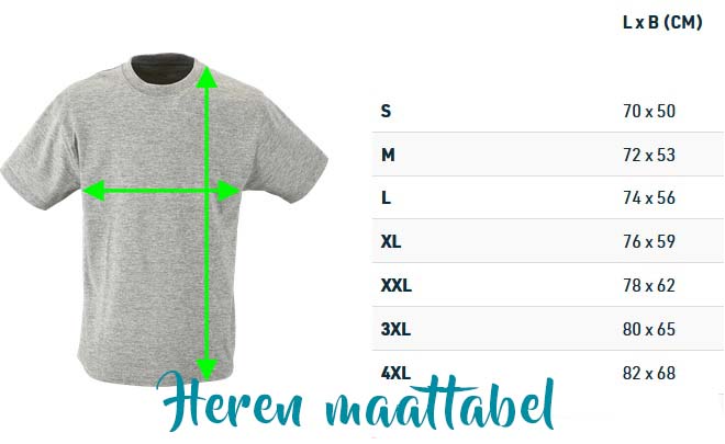 Ontwerp je eigen unieke shirt en/of romper, maak een shirt af met een tekst of bestel een shirt met standaard tekst.. Belangrijk: eigen ontworpen shirts zijn niet retourneerbaar (tenzij wij een fout maken) Kies dus zorgvuldig de maat. Gebruik hiervoor onderstaande maattabel.